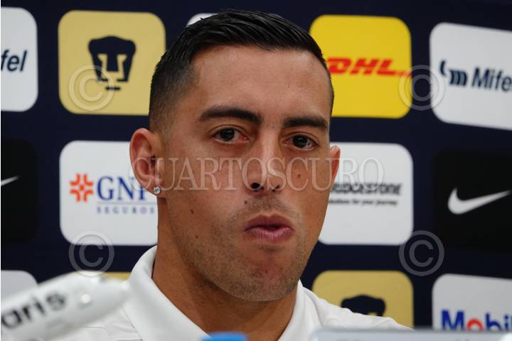 CIUDAD DE MÉXICO, 10ENERO2024.-, Rogelio Funes Morí, delantero, durante la presentación de los nuevos jugadores de los Pumas de la Universidad en la Cantera. FOTOS: ROGELIO MORALES /CUARTOSCURO.COM
