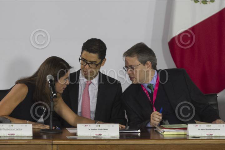 CIUDAD DE MÉXICO, 11JULIO2017.- Marcela Andrade Martínez, titular de la Unidad de Coordinación con Entidades Federativas de la SHCP; Osvaldo Santín QUiroz, Jefe de Servicio de Administración Tributaria, y Miguel Messmacher Linartas, subsecretario de Ingresos de la SHCP; durante la 313 Reunión de la Comisión Permanente de Funcionarios Fiscales, que se celebró en el Museo Interactivo de Economía (MIDE). FOTO: MOISÉS PABLO /CUARTOSCURO.COM