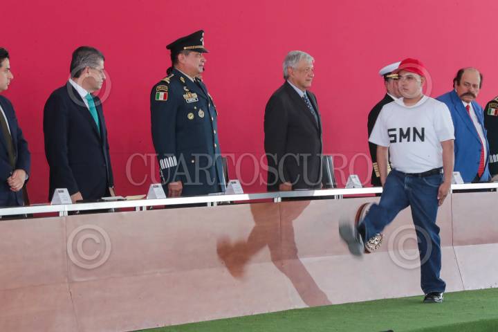 PIEDRAS NEGRAS, COAHUILA, 05MAYO2019.- Andrés Manuel López Obrador, Presidente de México, encabezó el 157 Aniversario de la Batalla de Puebla, en la cual participaron cientos de jóvenes del Servicio Nacional Militar. En la imagen lo acompañan Miguel Riquelme, gobernador de Coahuila, y Luis Cresencio Sandoval, secretario de la Defensa. FOTO: PRESIDENCIA /CUARTOSCURO.COM