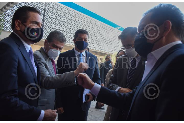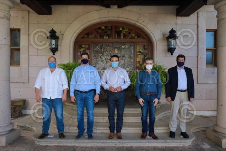 Enrique Alfaro, gobernador de Jalisco; Francisco García Cabeza de Vaca, gobernador de Tamaulipas; Silvano Aureoles Conejo, gobernador de Michoacán; Miguel Riquelme, y Javier Corral, gobernador de Chihuahua, integrantes de la Alianza Federalista se reunieron para plantear una estrategia ante el aumento de casos de Covid-19, en el país.