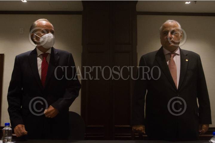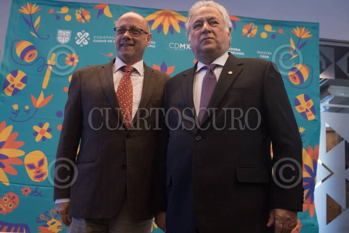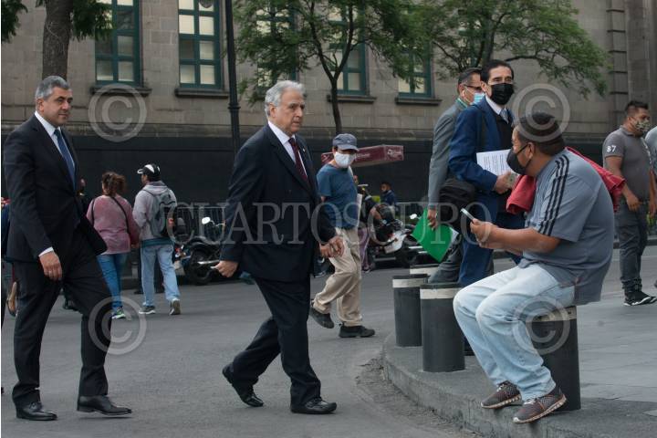 Zurab Pololikashvili, Secretario General de la Organización Mundial del Turismo (OMT), y Miguel Torruco Marqués, secretario de Turismo, caminaron en las inmediaciones del zócalo capitalino tras haber sostenido una reunión privada en Palacio Nacional.