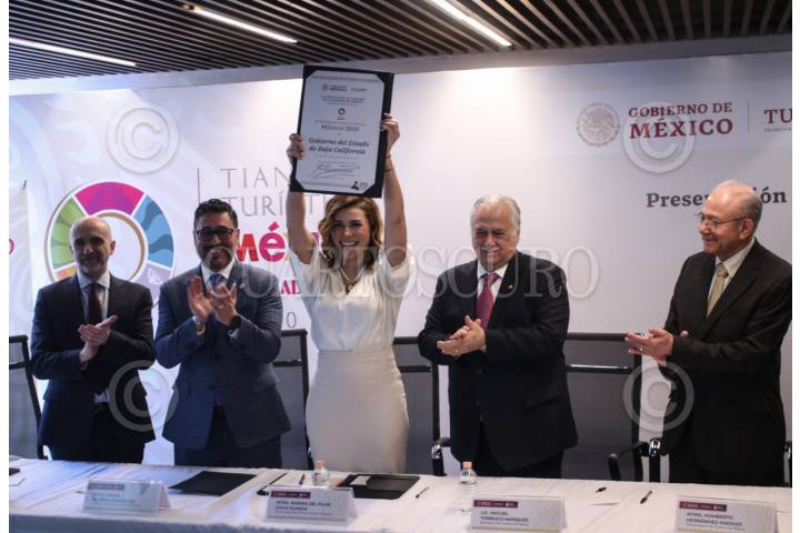 CIUDAD DE MÉXICO, 20FEBRERO2024.- Miguel Torruco Marqués, secretario de turismo y Marina del Pilar Ávila Olmeda, gobernadora del estado de Baja California durante el arranque del Tianguis turístico 2024, que tendrá de sede Acapulco y 2025 en Tijuana. FOTO: ANDREA MURCIA /CUARTOSCURO.COM
