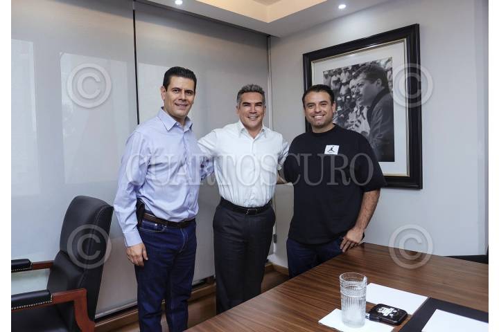 CIUDAD DE MÉXICO, 01JULIO2024.- Alejandro Moreno, presidente nacional del Partido Revolucionario Institucional, informó en sus redes sociales de su reunión con Miguel Alonso Reyes, ex gobernador de Zacatecas, actual secretario de Operación Política del PRI; y con Miguel Varela, presidente municipal electo del municipio de Zacatecas. FOTO: REDES SOCIALES /CUARTOSCURO.COM
