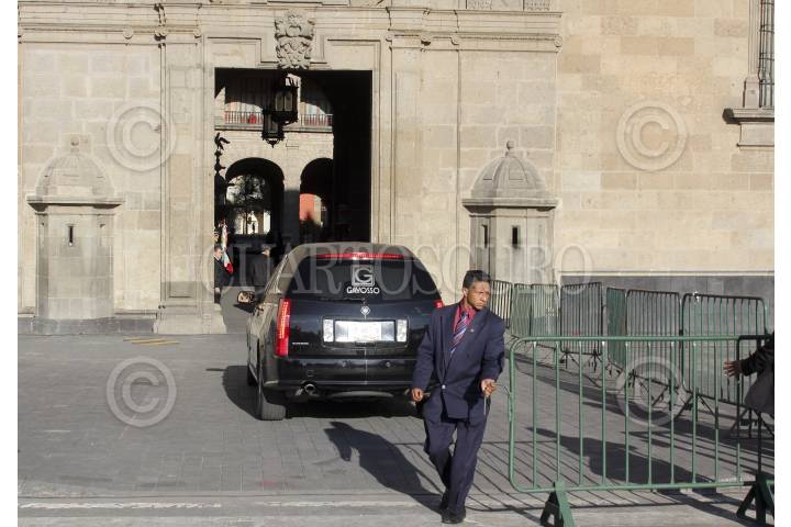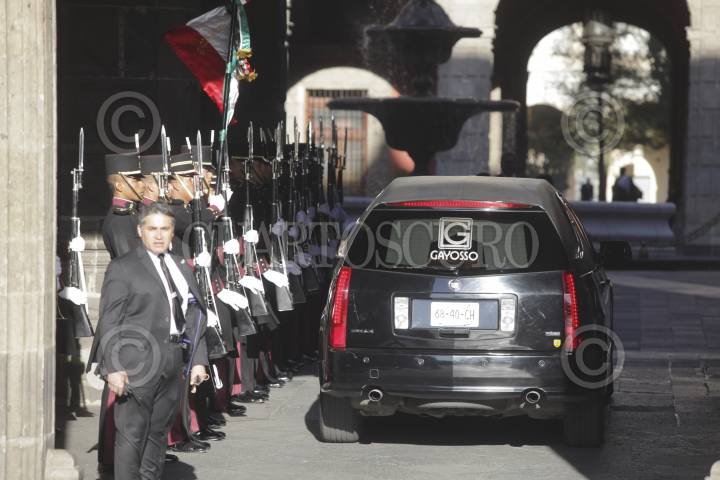 MÉXICO, D.F., 02ABRIL2012.- Los restos del ex presidente Miguel de la Madrid Hurtado, llegaron a las 18:00 horas a Palacio Nacional, donde le rindieron un homenaje de cuerpo presente. FOTO: JUAN PABLO ZAMORA /CUARTOSCURO.COM