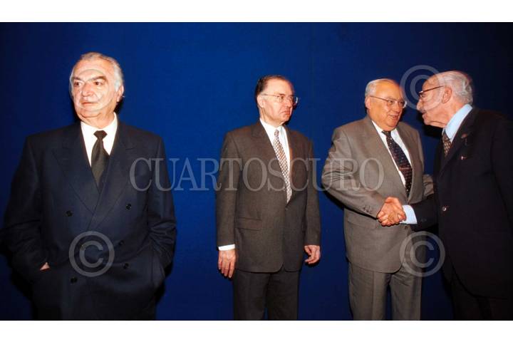 Miguel de la Madrid, Jorge Carpizo, Burgoa Orihuela durante la Conclusión del Congreso de Constitucionalidad en el Instituto de Investigaciones Juridicas de la UNAM. FOTO: Christian Palma/CUARTOSCURO.COM