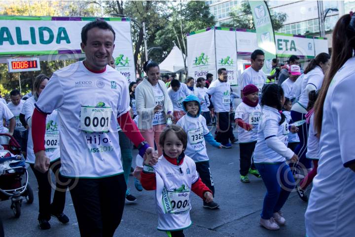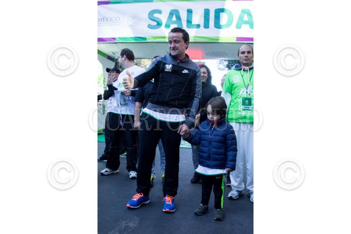 CIUDAD DE MÉXICO, 26NOVIEMBRE2017.- Mike Arriola, director general del Instituto Mexicano del Seguro Social (IMSS), y su hijo durante la carrera Padres e Hijos patrocinada por el IMSS, sobre Paseo de la Reforma. La competencia buscó romper el record Guinness de la mayor cantidad de corredores en parejas, sin embargo faltaron 68 personas para alcanzar el logro, el actual record pertenece al instituto y es de tres mil 479 competidores, impuesto en 2014. FOTO: GALO CAÑAS /CUARTOSCURO.COM