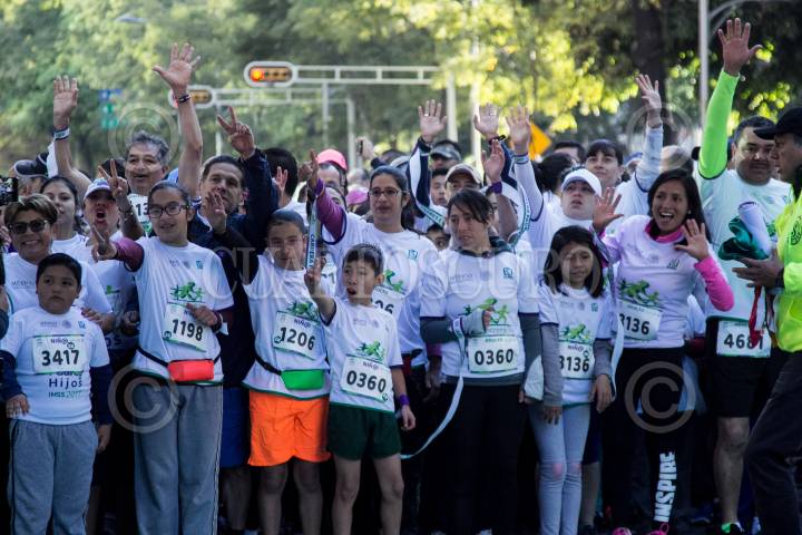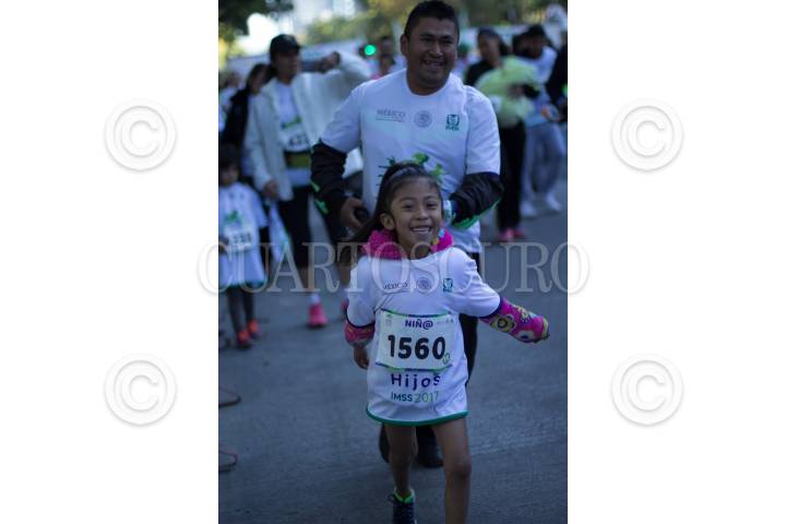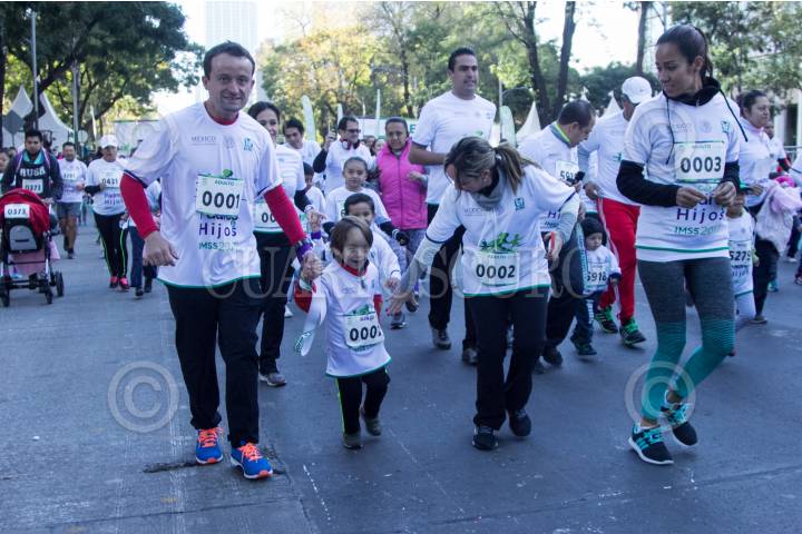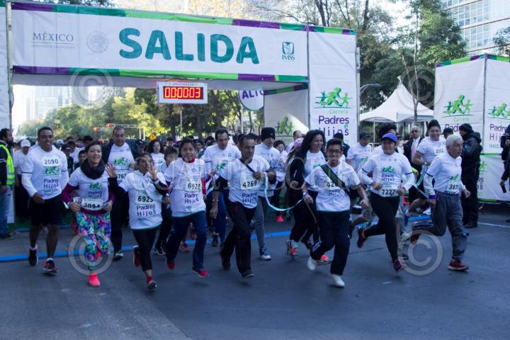 CIUDAD DE MÉXICO, 26NOVIEMBRE2017.- Carrera Padres e Hijos patrocinada por el IMSS, sobre Paseo de la Reforma. La competencia buscó romper el record Guinness de la mayor cantidad de corredores en parejas, sin embargo faltaron 68 personas para alcanzar el logro, el actual record pertenece al instituto y es de tres mil 479 competidores, impuesto en 2014. FOTO: GALO CAÑAS /CUARTOSCURO.COM