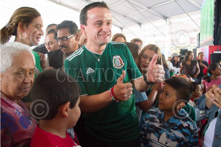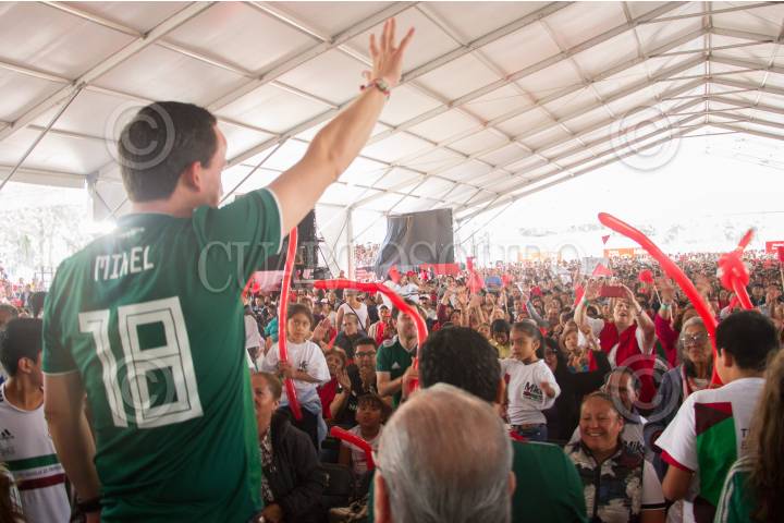 CIUDAD DE MÉXICO, 23JUNIO2018.- Mikel Arriola, candidato del PRI a la jefatura del Gobierno de la Ciudad, convivio con simpatizantes de su partido con los que miró el encuentro México-Corea del Sur, en el deportivo Santa Cruz Meyehualco, en Iztapalapa. FOTO: VICTORIA VALTIERRA /CUARTOSCURO.COM
