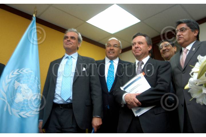 MÉXICO D.F. 22JUNIO2006.- José Mila Castillo, representante regional de la ONUDD Pedro Peñaloza director general para la prevención del delito, Eduardo Medina Mora. secretario de Seguridad Publica Federal y Ernesto Cespedes director general para temas globales de la SRE, durante la conferencia magistral "Mèxico y las Drogas" en el marco de la jornada nacacional contra las drogas en las oficinas de la UNO contra la droga y el delito para México y Centroamerica. FOTO: Guillermo Perea/CUARTOSCURO.COM