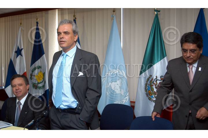 MÉXICO D.F. 22JUNIO2006.- Eduardo Medina Mora. secretario de Seguridad Publica Federal, José Mila Castillo representante regional de la ONUDD y Santiago Vasconcelos Subprocurador de Investigaciones Especiales, durante la conferencia magistral "Mèxico y las Drogas" en el marco de la jornada nacacional contra las drogas en las oficinas de la UNO contra la droga y el delito para México y Centroamerica. FOTO: Guillermo Perea/CUARTOSCURO.COM