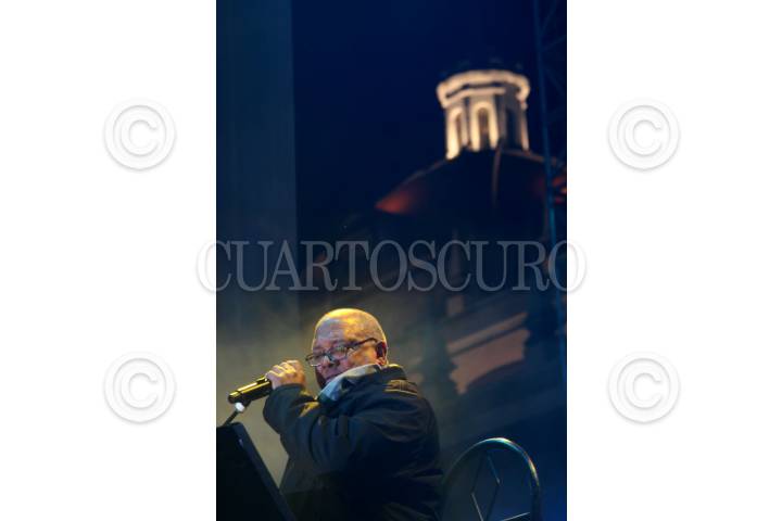PUEBLA, PUEBLA, 13NOVIEMBRE2009.- El cantautor cubano Pablo Milanes se presento la noche de ayer en el zócalo de esta ciudad como parte del XI Festival Internacional de Puebla 2009. FOTO: RODOLFO ANGULO/CUARTOSCURO.COM