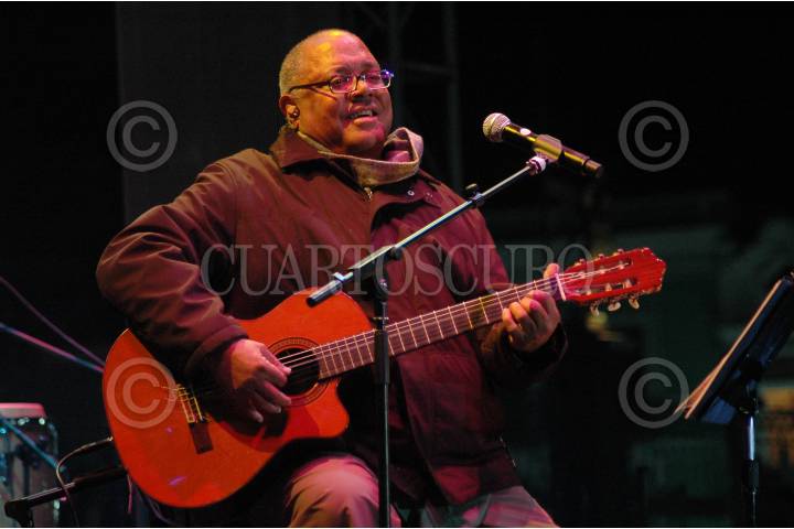 PUEBLA, PUEBLA, 12NOVIEMBRE2009.- Pablo Milánes, cantautor Pablo Milanes, se presento en el zócalo, durante el Festival Internacional de Puebla el cual reunió a mas de 10,000 personas que disfrutaron canciones clasicas. FOTO: FRANCO/CUARTOSCURO.COM