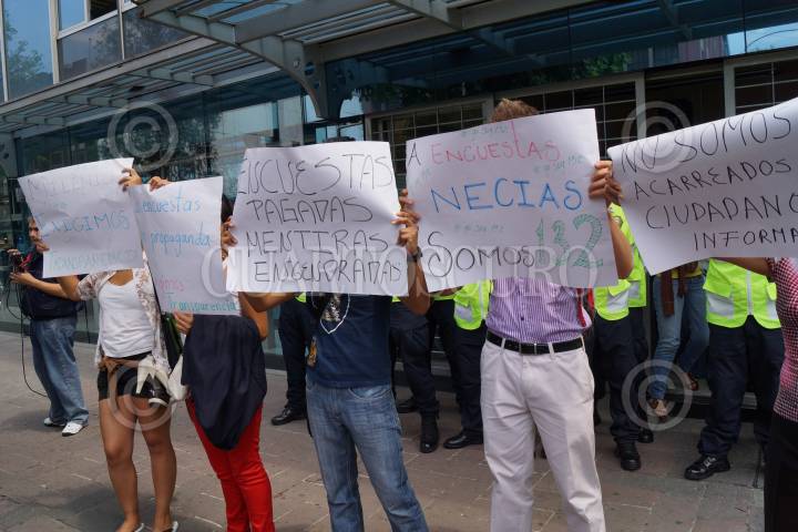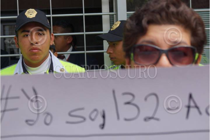 MÉXICO, D.F., 08JUNIO2012.- Integrantes del movimiento "YoSoy132" "Académicos", de la UNAM, realizaron una protesta a las afueras del diario Milenio, para exigir a este la igualdad en la información, ya que consideran que hay un favoritismo al candidato tricolor. Al terminar la protesta entregaron una carta con sus demandas. FOTO: PEDRO ANZA /CUARTOSCURO.COM