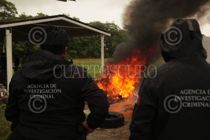 VILLAHERMOSA, TABASCO, 15NOVIEMBRE2019.- Tropas de la 30 Zona Militar y Fiscalía General de la República destruyeron por el método de incineración ochenta y tres kilos 187 gramos de cocaína asegurada en distintos operativos. Dicha acción tuvo lugar en el campo El Tigre del predio El Porvenir en la villa Macultepec. FOTO: EDGAR JASSO/CUARTOSCURO.COM
