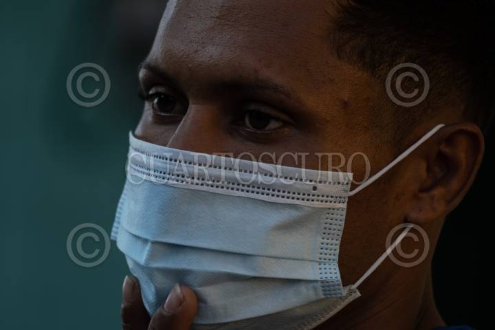 Migrante hondureño en espera de ser atendido por el personal de La casa del Migrante.