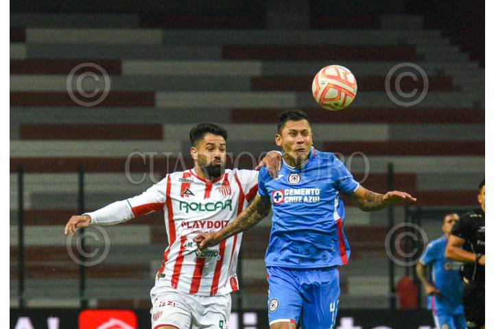 Julio Dominguez defensa de Cruz Azul y Milton Giménez delantero de Necaxa durante la Copa Sky en el estadio Nemesio Diez.