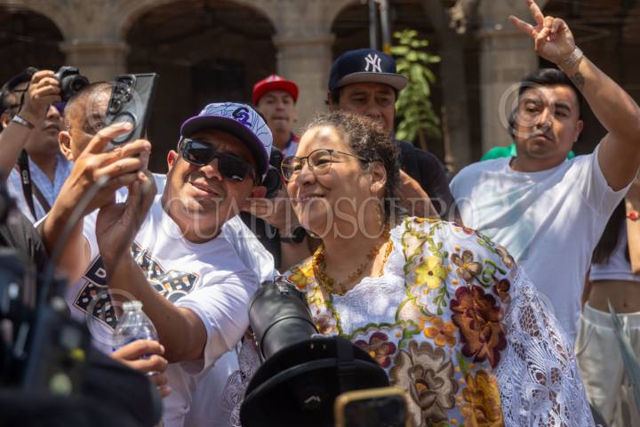 CIUDAD DE MÉXICO, 30MARZO2025.- Lenia Batres inicio su campaña para contender a ministra de la Suprema Corte de Justicia de la Nación, cargo que ocupa actualmente, sin embargo el próximo mes de junio los cargos de jueces, magistrados y ministros serán renovados mediante el voto popular. La llamada “Ministra del Pueblo” encabezó un mitin frente a la SCJN en donde aseguró que encabezará un cambio dentro del poder judicial. Lenia Batres recorrió la plancha del zócalo hasta Eje Central en donde aprovechó para repartir volantes con información de su plataforma para contender por un cargo en la nueva integración de la SCJN. FOTO: MOISÉS PABLO/CUARTOSCURO.COM