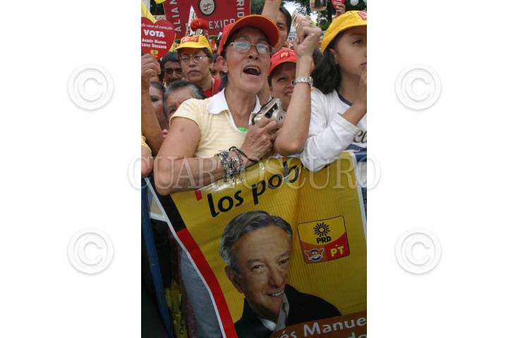 Mexico D. F. 19 Junio 2004.- Integrantes del Frente Amplio Democrático realizó un mitin de apoyo a Andrés Manuel López Obrador, jefe de gobierno del D. F., en la explanada al monumento a la Revolución. FOTO: Nelly Salas/CUARTOSCURO.COM