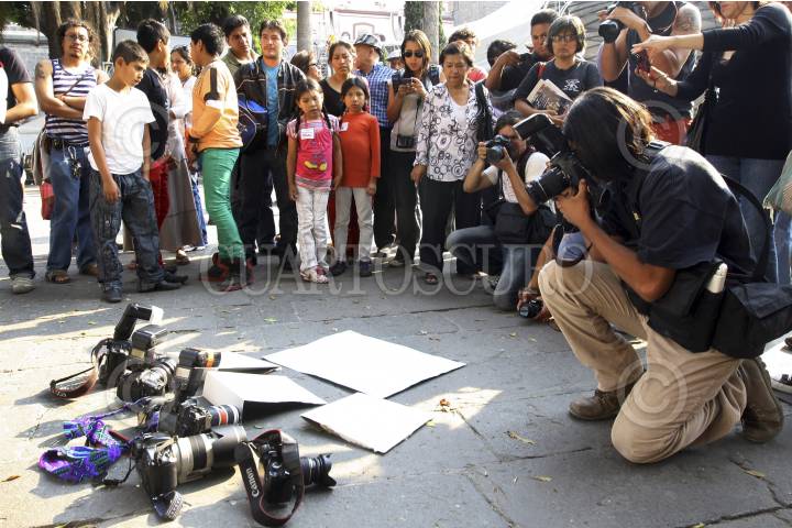 PUEBLA,PUEBLA, 29ABRIL2012.- Periodistas poblanos se manifestaron en el zócalo de la ciudad para mostrar su indignación y exigir justicia por la muerte de la periodista veracruzana Regina Martínez Pérez, quien fuera hallada sin vida en el interior de su domicilio el día de ayer. FOTO: HILDA RÍOS /CUARTOSCURO.COM