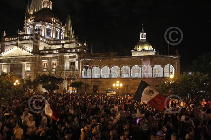 GUADALAJARA, JALISCO. 15SEPTIEMBRE2015.- Color minutos antes de que Jorge Aristóteles Sandoval Díaz, Gobernador del estado, diera el tradicional grito de independencia desde el balcón de Palacio de Gobierno ante cientos de personas que asistieron a la Plaza de Armas. FOTO: FERNANDO CARRANZA GARCIA / CUARTOSCURO.COM