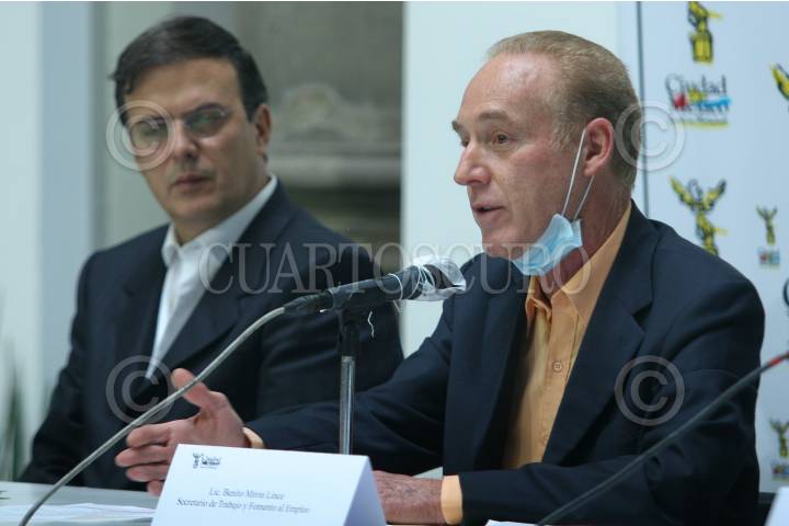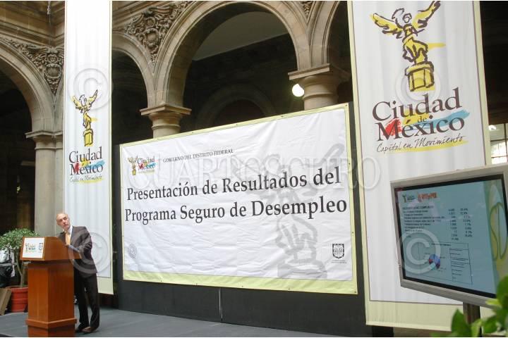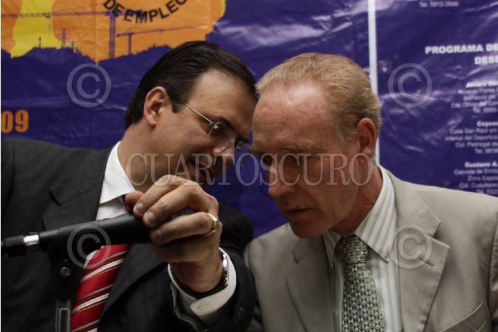 MÉXICO, D.F., 15MAYO2009.- Marcelo Ebrad jefe de gobierno capitalino y Benito Mirón, secretario del Trabajo de la ciudad quien informo que según las últimas cifras del INEGI, hasta marzo de este 2009, la tasa de desempleo abierta en la capital del país se ubicó en 5.6%, muy por debajo del porcentaje que se tenía para el mismo periodo del año anterior, cuando el desempleo abierto era de 6.4 por ciento, esto durante la entrega de apoyos económicos del programa de seguro de desempleo. FOTO: RICARDO CASTELAN/CUARTOSCURO.COM
