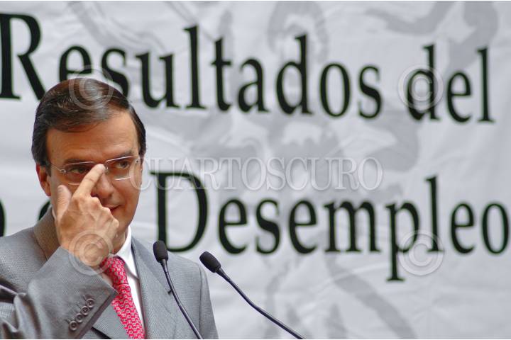 MÉXICO, D.F., 15MAYO2009.- Marcelo Ebrad jefe de gobierno capitalino quien informo que según las últimas cifras del INEGI, hasta marzo de este 2009, la tasa de desempleo abierta en la capital del país se ubicó en 5.6%, muy por debajo del porcentaje que se tenía para el mismo periodo del año anterior, cuando el desempleo abierto era de 6.4 por ciento, esto durante la entrega de apoyos económicos del programa de seguro de desempleo. FOTO: RICARDO CASTELAN/CUARTOSCURO.COM