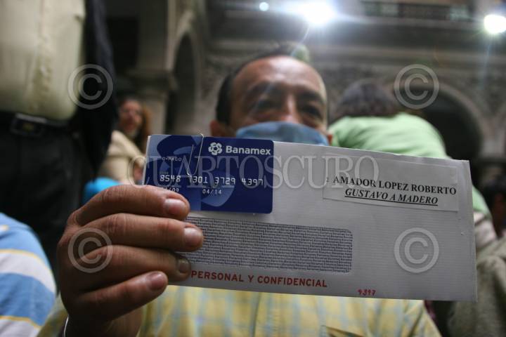 MÉXICO, D.F., 15MAYO2009.- Capitalinos desempleados resivieron de manos de Marcelo Ebrad jefe de gobierno capitalino, apoyos económicos como parte del programa Seguro de desempleo. FOTO: RICARDO CASTELAN/CUARTOSCURO.COM