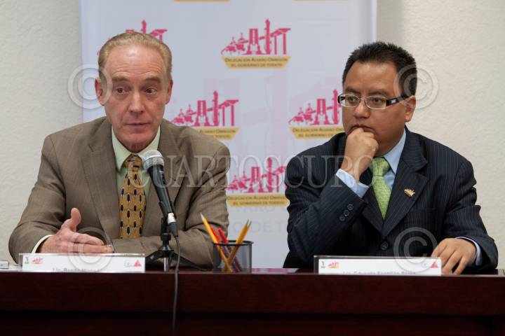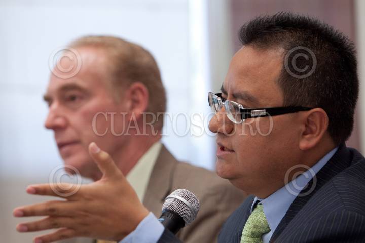 MÉXICO, D.F., 12NOVIEMBRE2010.- Benito Mirón Lince, secretario de Trabajo y Fomento al Empleo del GDF y Eduardo Santillan, Jefe delegacional en Álvaro Obregón, ofrecieron una conferencia de prensa para dar a conocer un nuevo programa para regularizar a los llamados "franeleros" en esta demarcación. FOTO: MISAEL VALTIERRA/CUARTOSCURO.COM