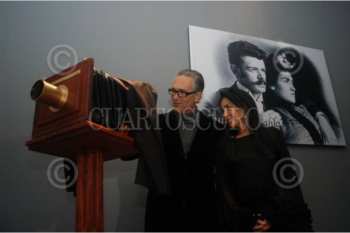 MÉXICO D.F. 04SEPTIEMBRE2007.-El empresario Ricardo Salinas Pliego, acompañado de su esposa María Laura Medina, asistieron a la inauguración de la exposición de fotografía "Dos Miradas a la Arquitectura Monumental" de los fotografos Guillermo Khalo y Henrry Greenwood, esto en el Museo de San Ildelfonso.En la imágen ambos observan una camara fotográfica antigua. FOTO: GUILLERMO PEREA/CUARTOSCURO.COM
