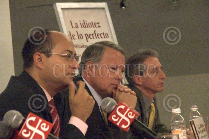 MEXICO, D.F., 26SEPTIEMBRE2006.- Presentó el escritor y analista Politico Jesús Silva-Herzog Márquez su libro titulado "La idiotez de lo perfecto. Miradas a la politica", la presentacion se realizó el el Fondo Rosario Castellanos, Centro Cultural Bella Epoca. En la grafica se observa a Jesús Silva-Herzog Márquez, Federico Reyes Heroles y Joaquin Diez Canedo FOTO: SAÚL LÓPEZ ESCORCIA/CUARTOSCURO.COM