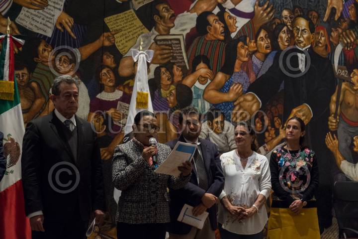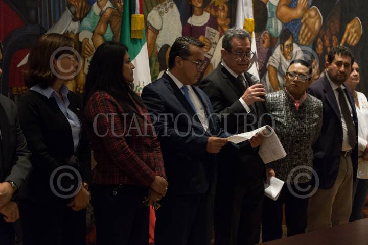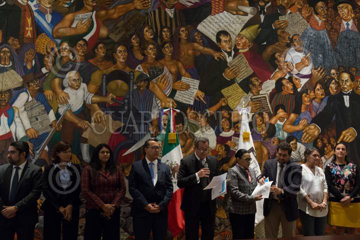 CIUDAD DE MÉXICO, 16AGOSTO2018.- Héctor Villegas Sandoval, Ana Laura Magaloni, Almudena Ocejo Rojo, César Cravioto, equipo de Transición de Claudia Sheinbaum, jefa de Gobierno de la Ciudad electa y Rosa Isela Rodríguez, secretaria de desarrollo social en la Ciudad, ofrecieron conferencia de prensa en el antiguo Palacio de Gobierno. FOTO: ANDREA MURCIA /CUARTOSCURO.COM