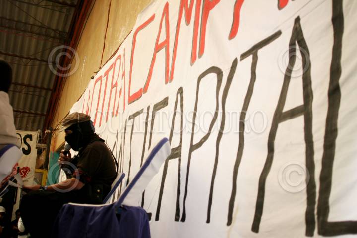 MEXICO, D.F. 02 DICIEMBRE 2006. Los Comandantes Miriam, Zebedeo, Gabriela y el Subcomandante Insurgente Marcos, Delegado Zero de La Otra Campaña del EZLN durante conferencia titulada ¨La Otra Campaña y el anticapitalismo¨. FOTO: MOYSÉS ZÚÑIGA/CUARTOSCURO.COM