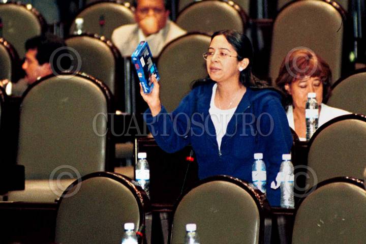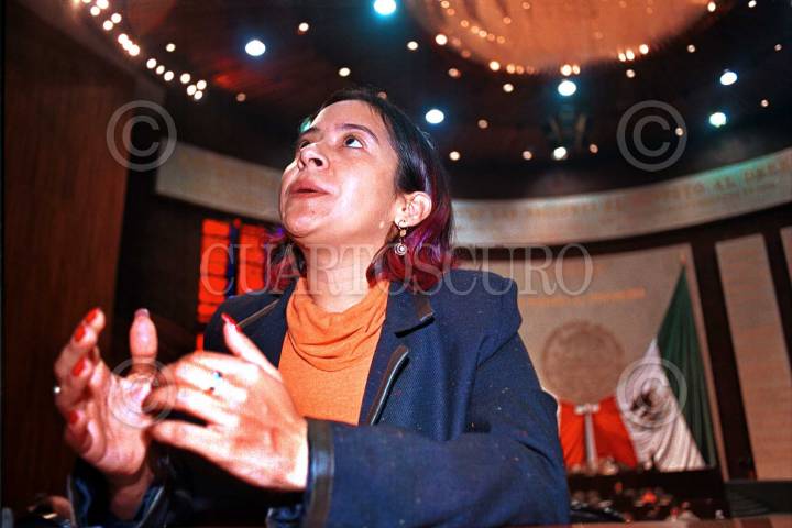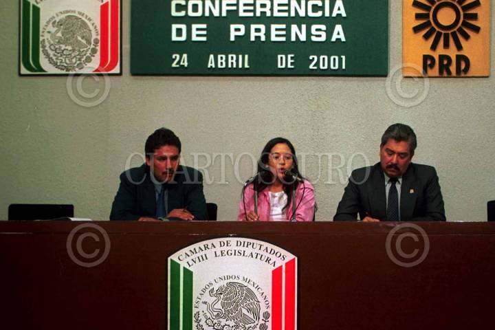 Miroslava García Suárez, diputada del PRD, en conferencia de prensa en la que hablo de los Impuestos Suntuosos y el Presupuesto para el 2003. FOTO: Victoria Valtierra/CUARTOSCURO.COM