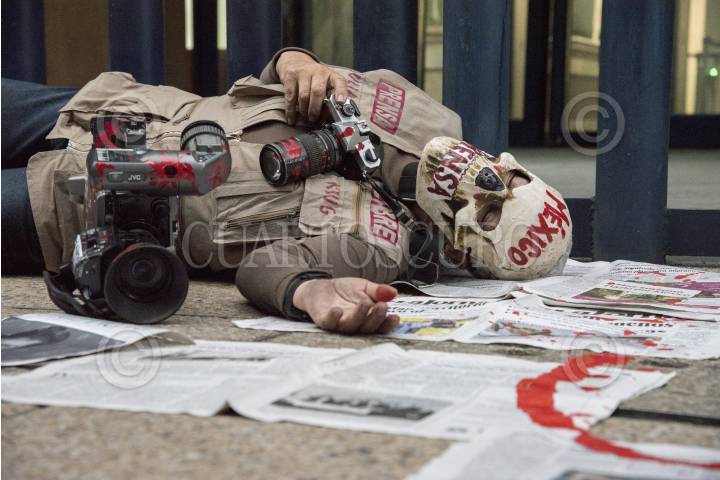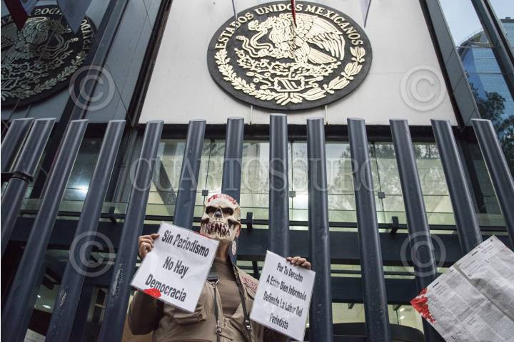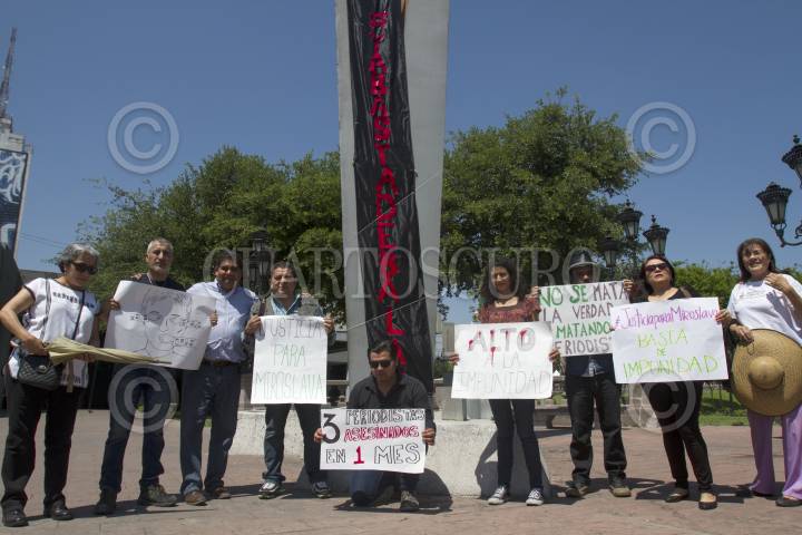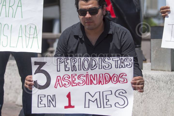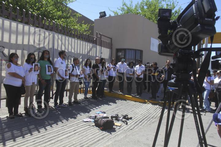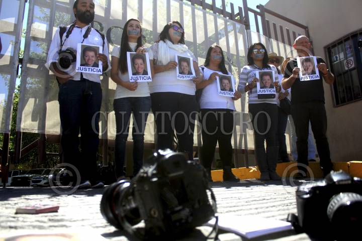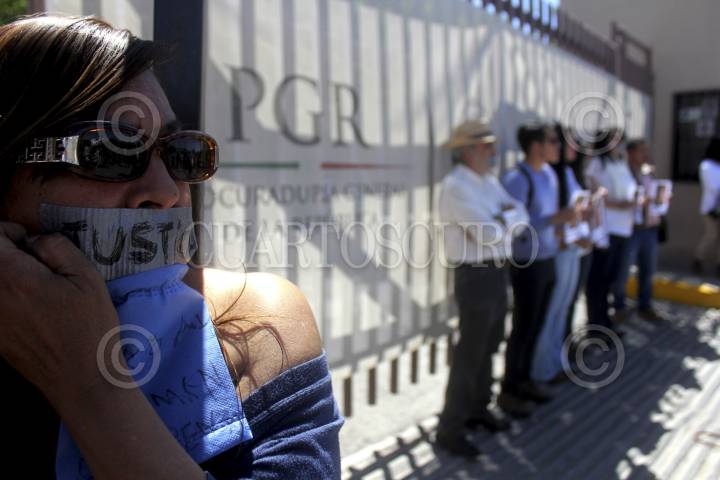 CIUDAD JUÁREZ, CHIHUAHUA,25MARZO2017.- Miembros de diferentes medios de comunicación se manifestaron en solidaridad ante el asesinato de la periodista Miroslava Breach, la protestafue de manera silenciosa frente a las instalaciones de la Procuraduría General de la República. FOTO: NACHO RUIZ /CUARTOSCURO.COM