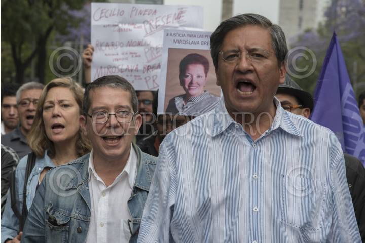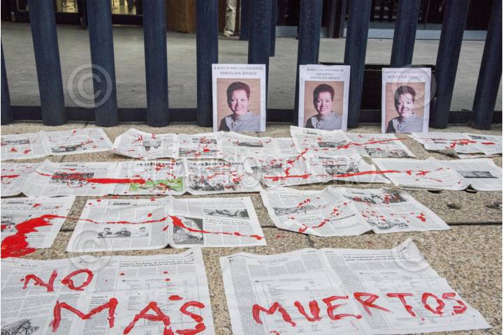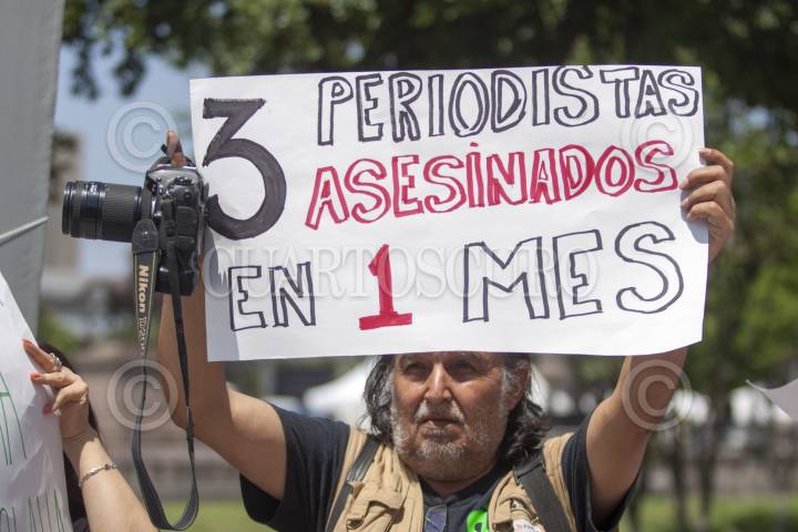 CHILPANCINGO, GUERRERO, 24MARZO2017.- Trabajadores de diferentes medioS de comunicación se manifestaron frente a la delegación de la Procuraduría General de la Republica, para exigir justicia por la reportera de La Jornada Miroslava Breach Velducea, que fue asesinada en Chihuahua. FOTO: JOSÉ I. HERNÁNDEZ / CUARTOSCURO.COM