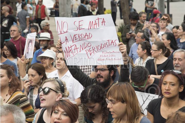 MONTERREY, NUEVO LEÓN, 25MARZO2017.- Periodistas de Nuevo León se reúnen en el monumento a la Libertad de Expresión para manifestarse por el asesinato de la periodista Miroslava de la Jornada. Durante el sexenio de Peña Nieta, alrededor de 30 periodistas han sido asesinados. FOTO: GABRIELA PÉREZ MONTIEL /CUARTOSCURO.COM