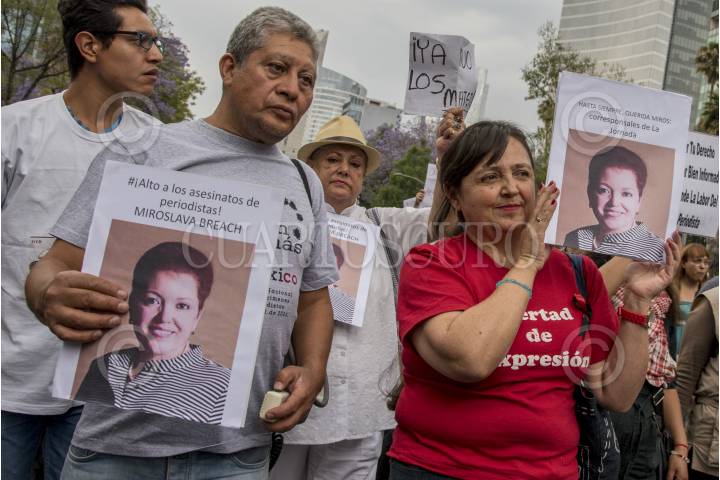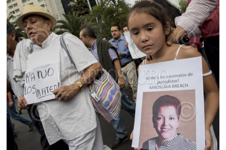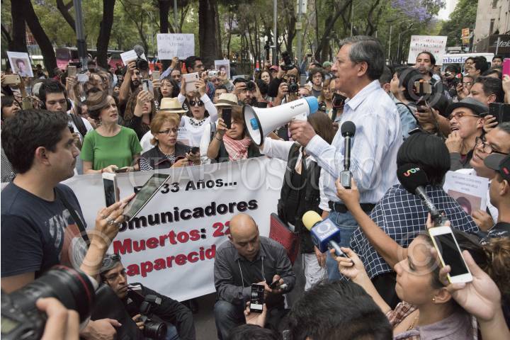 CIUDAD DE MÉXICO, 25MARZO2017.- Periodistas de diferentes medios de comunicación, acompañados por ciudadanos, realizaron una marcha del Ángel de la Independencia a las instalaciones de la Procuraduría General de la República, para protestar en contra de los asesinatos de miembros de su gremio. FOTO: TERCERO DÍAZ /CUARTOSCURO.COM