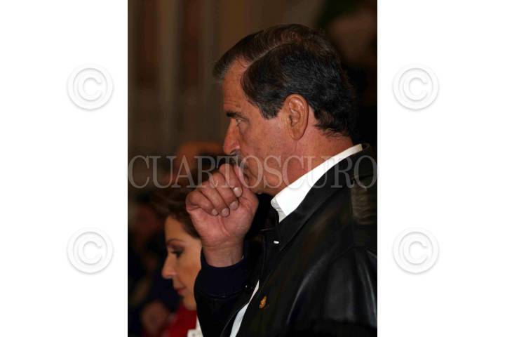 Monterrey, Nuevo León 11 ENERO 2004.- El presidente Vicente Fox se persigna al final de la misa de medio día, a la que asistio acompañado de Marta Sahagún en la catedral de la ciudad de Monterrey. FOTO: PEDRO VALTIERRA/CUARTOSCURO.COM