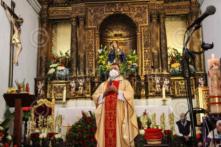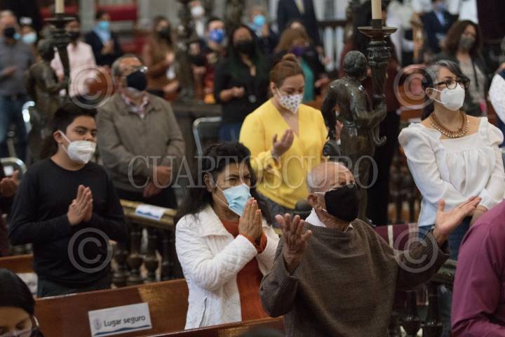 Fieles con cubrebocas durante la misa de la Asunción de la Virgen María en la Catedral Metropolitana.