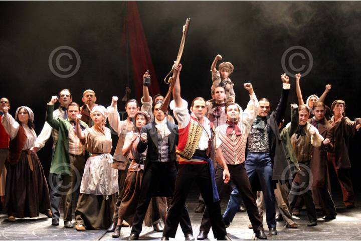 MEXDF26MARZO2004.- El musical Los Miserables, se presenta en el Centro Cultural Telmex, estelarizada por un gran reparto encabezado por los actores; Tazio Galvan, Lisardo Guarnos, Luis Rene Aguirre y Ernesto D`Alessio y dirigida por Isaac Saúl. FOTO: Moisés Pablo/CUARTOSCURO.COM