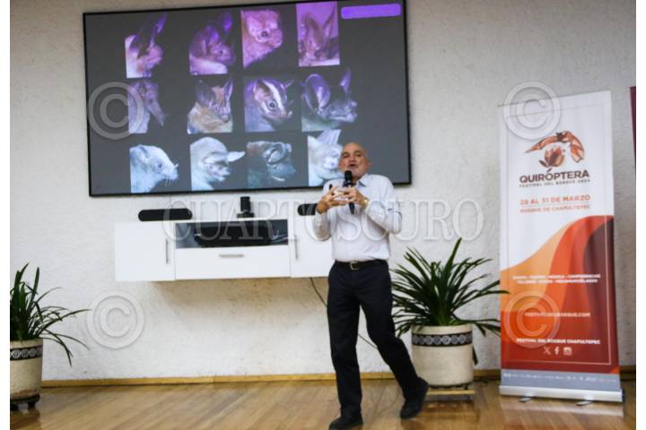 CIUDAD DE MÉXICO. 25MARZO2024.- En el marco del Festival del Bosque de Chapultepec, Quiróptera, la Secretaría del Medio Ambiente (Sedema) de la Ciudad de México, en la charla “Los murciélagos no son como los pintan: mitos y leyendas explicados” que ofreció el doctor Rodrigo Medellín, director fundador de la Red Latinoamericana para la Conservación de los Murciélagos. En el auditorio de la Quinta Colorada del Bosque de Chapultepec. Asistieron Marina Robles y la directora del Bosque Mónica Pacheco. FOTO: VICTORIA VALTIERRA/CUARTOSCURO.COM