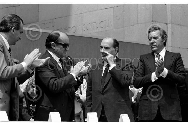 El presidente de Francia Francois Mitterrand y Carlos Hank Gonzales en el Monumento a la Revolucion.CT1981 Foto: Pedro Valtierra/Cuartoscuro
