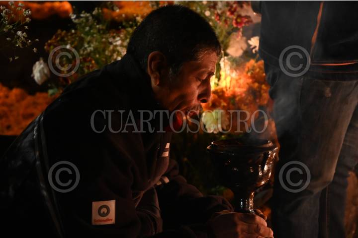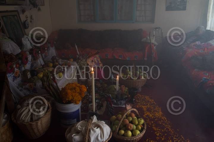 Vecinos del pueblo San Andrés Mixquic colocaron ofrendas en sus casas en homenaje a la celebración del Día de Muertos y prendieron copal a las 12 del día para esperar la llegada de las almas de los difuntos en sus hogares