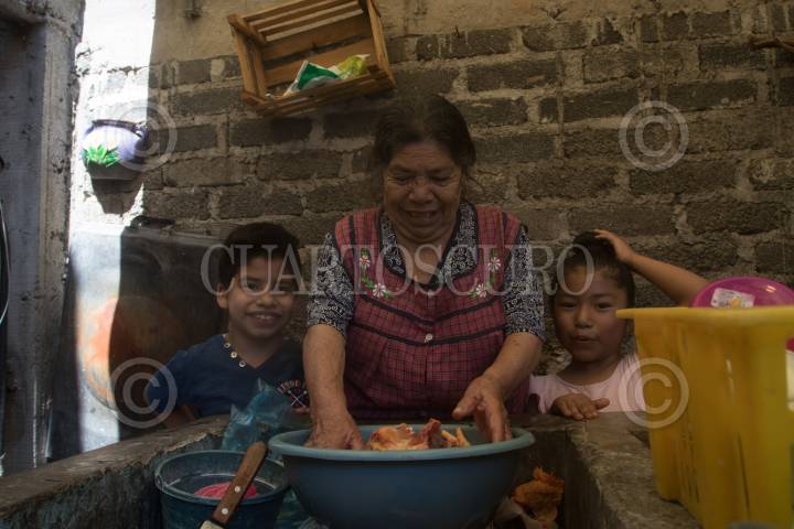 Una familia prepara alimentos para la llegada de los difuntos en el pueblo de San Andrá Mixquic