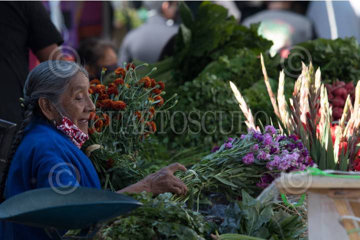 Una mujer vendió flores con motivo del Día de muertos afuera del panteón de San Andrés Mixquic