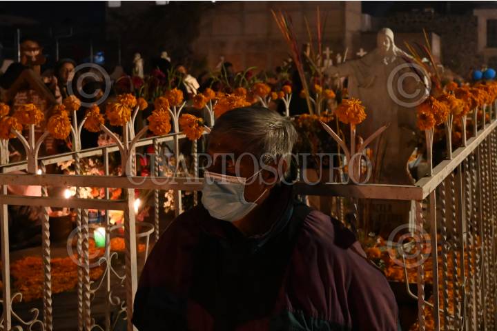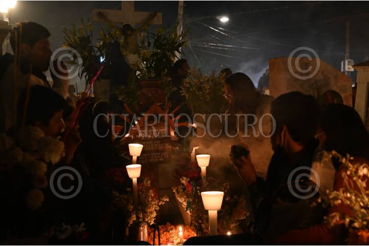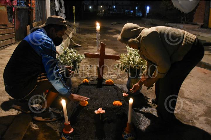 Ante la prohibición del acceso al panteón del pueblo de Mixquic, los habitantes de esa localidad despidieron a sus difuntos desde su casa.