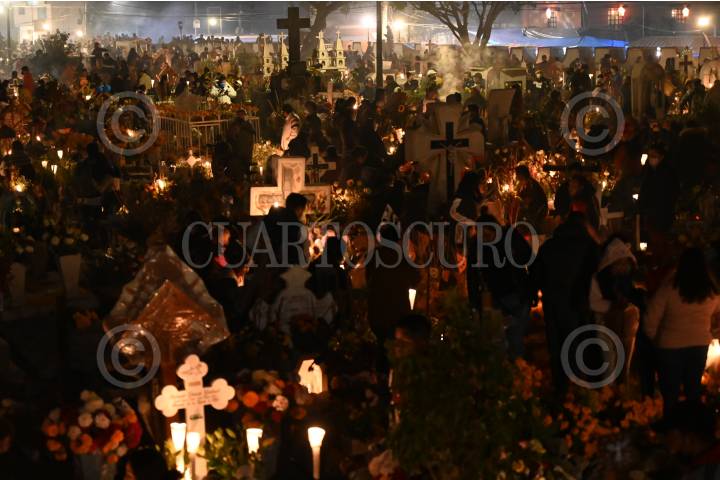 Los habitantes de Mixquic colocaron tumbas para despedir a sus difuntos este día de muertos.