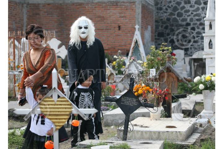 MÉXICO, D.F., 01NOVIEMBRE2009.- Familia acude a visitar el cementario el Día de muertos en Mixquic. FOTO: ROCÍO ORTIZ/CUARTOSCURO.COM