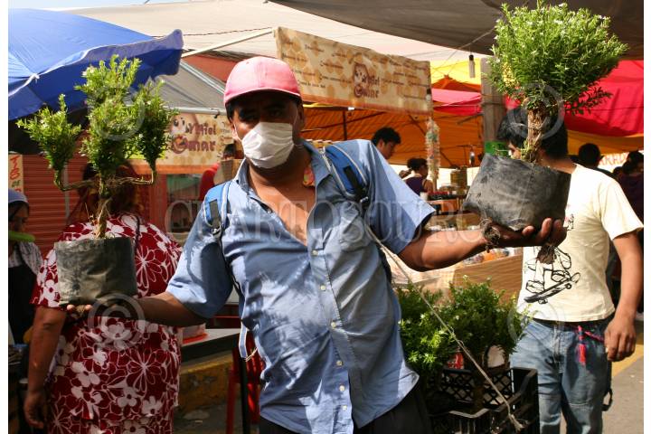MÉXICO, D.F., 01NOVIEMBRE2009.- Vendedor de plantas durante el Día de muertos en Mixquic. FOTO: ROCÍO ORTIZ/CUARTOSCURO.COM