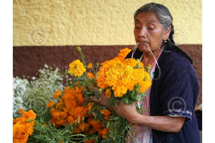 MÉXICO, D.F., 01NOVIEMBRE2009.- Vendedora de flores el Día de muertos en Mixquic. FOTO: ROCÍO ORTIZ/CUARTOSCURO.COM